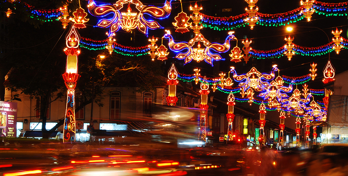 小印度(Little India)是新加坡印度族群的聚集地,犹如印度的缩影。一进入小印度,一股浓烈的辣椒气味就会扑面而来。商店里陈列着银器、铜器、具有民族特色的珠宝、茉莉花环和丝制莎丽。无论在庞大的竹脚(Zhu Jiao)中心。还是在小杂货铺中,各种有趣的东西等着您去探索。在屠妖节(Deepavali),即兴都教光节(Hindu Festival of Lights),小印度(Little India)装点成金碧辉煌的神话世界,到处是前来购物的人们。