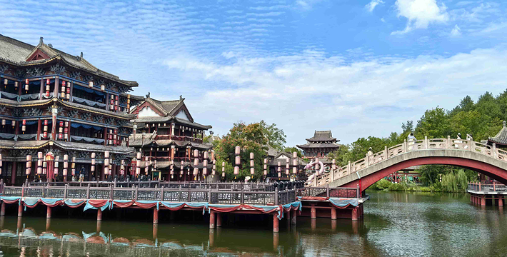 踏上“汴河”上最雄伟的桥“虹桥”两岸风光 尽收眼底,《清明上河图》是以虹桥为中心,沿汴河展开描绘的精彩画面。汴河蜿蜒,河水清澈,波光粼粼,再现了千年前北宋东京汴河漕运景象。