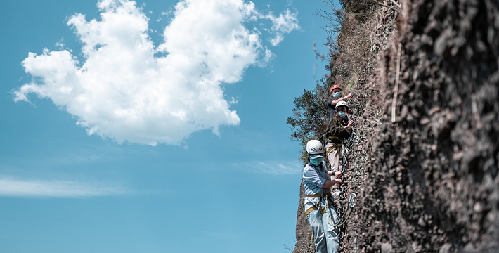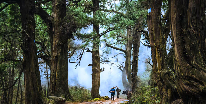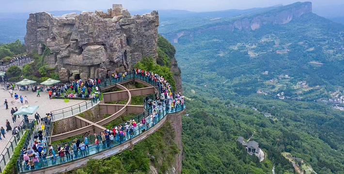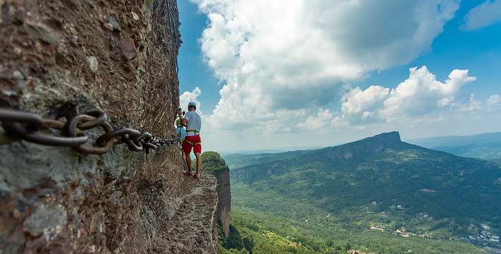 虽然古栈道早已湮没在历史的长河,但如今,在这些壁立的山峰之上,又依山重建起了险峻的盘山栈道,供游人登山观景。