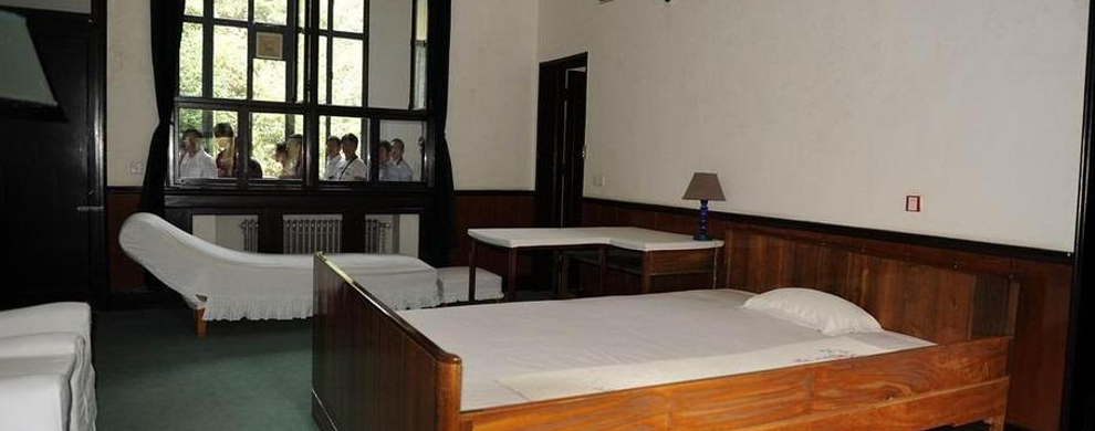滴水洞位于毛泽东铜像以西约四公里处的狭谷中。洞中碧峰翠岭,茂林修竹,山花野草,舞蝶鸣禽,自然景观清雅绝伦。《毛氏族谱》赞之曰:“一钩流水一拳山,虎踞龙盘在此间;灵秀聚钟人莫识,石桥如锁几重关。” 1959年6月,毛泽东回到阔别32年的故乡,来到了滴水洞口的韶山水库游泳,兴之所致,随口对湖南省委书记周小舟说:“小舟,在这个山沟里修几间茅房子,我老了来住一住。中南局有些小型会议……”于是有滴水洞别墅之建。 别墅始建于1960年,房屋建筑形式与北京*房屋的结构相近似。1966年6月,毛泽东南下视察到韶山,在一号楼住了11天。他于这年7月8日在武汉写信称此处为“西方的一个山洞”。1970年,由欧阳海英雄连队在别墅后修建了长100米的防空洞。洞的一侧有防震室、指挥室等军事设施。洞的两端各有厚度近尺,重达几吨的装有自动控制的粗重铁门。
