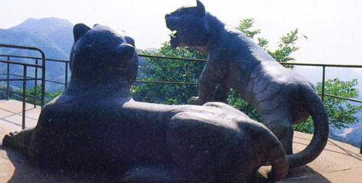 山洞西北的山嘴,传说过去常有老虎在此歇息,故曰“虎歇坪”,现有两只卧虎石雕,栩栩如生的模样,吸引着游人争相合影。