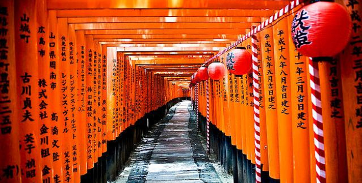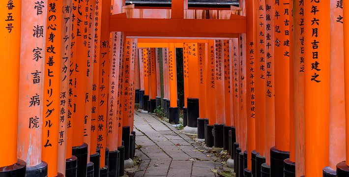 伏见稻荷大社建于8世纪的这座神社,在供奉稻荷--神米、日本米酒和昌盛繁荣之神的9000。商人来到神的面前祈求成*和财富。在巨大的红色牌坊之后,神社的侧面立有石狐狸(狐狸是稻荷在地球上的代表),从这里你开始向上攀登。整个山坡都覆盖着数不清的红色牌坊,它们一个连一个形成了无尽头的隧道。你走在奇特的红色微光里,那微光在位于山岩上的小神社里时隐时现。地址:京都南部,在稻荷站。常年开放,免费入内。