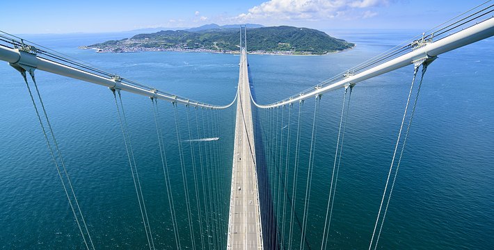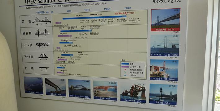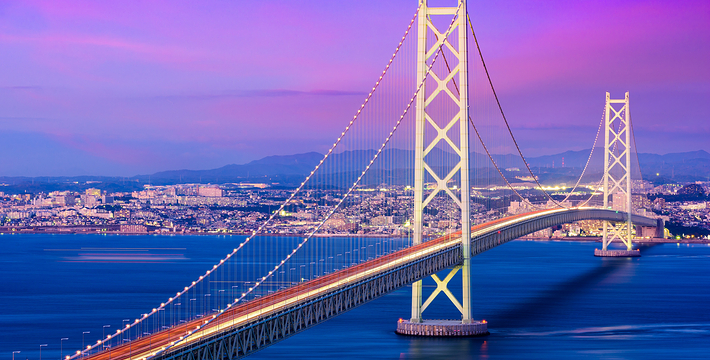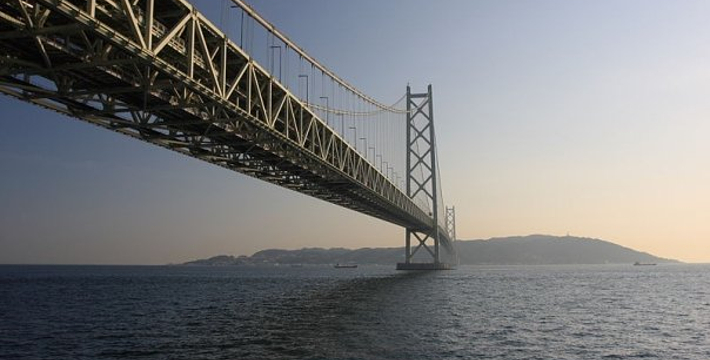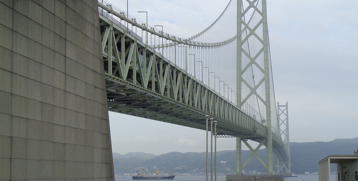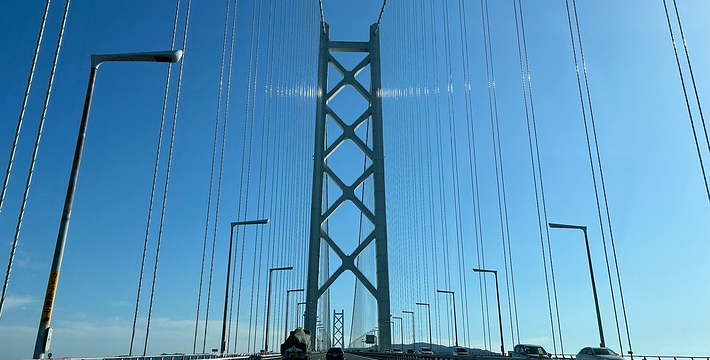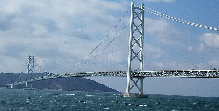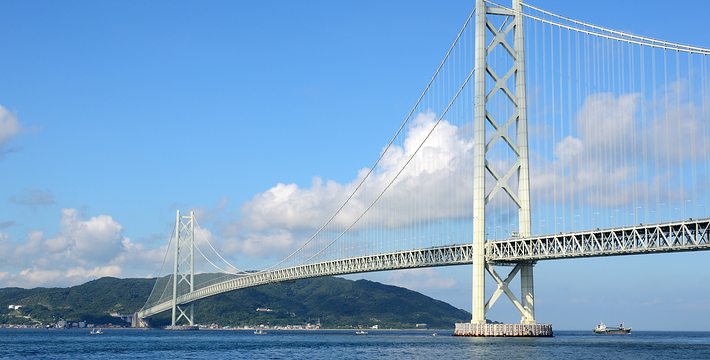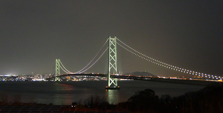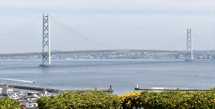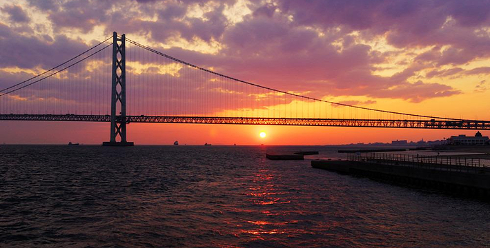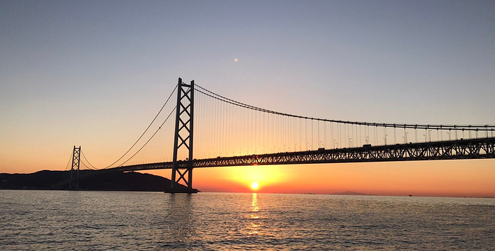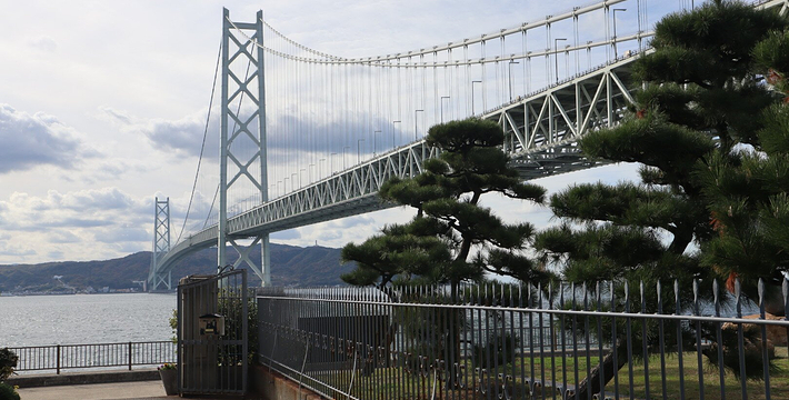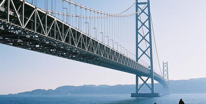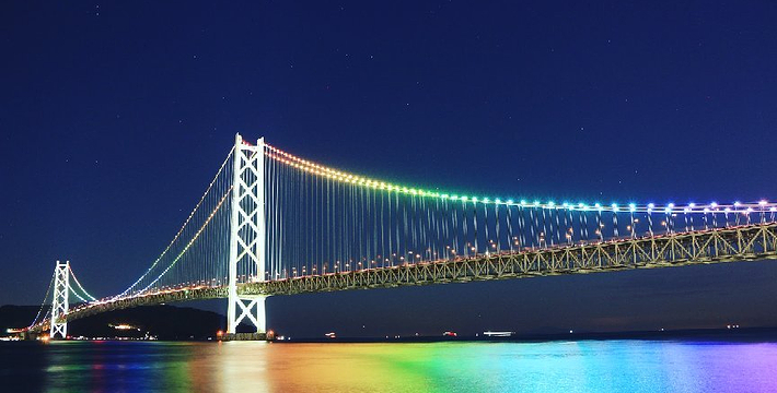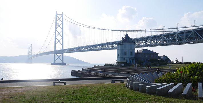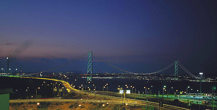 明石海峡大桥于1998年4月正式开通,总长度3911米。可见其卓越的设计与施工水平。它的存在使大阪、神户通往四国地区的交通越来越方便。夜晚,全桥被华丽彩灯环绕,仿佛一串绚烂珠链横跨海湾,由此而得“珍珠桥”的美名。在这通往梦想的大桥周围,开辟了众多观光设施,成为广受欢迎的旅游胜地。