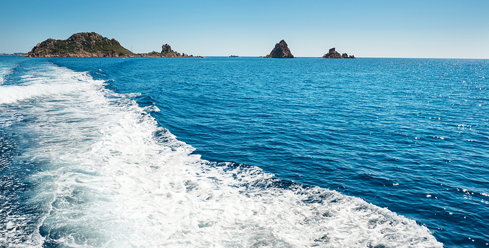 五六岛顾名思义就是时而五个岛时而变六个岛的神秘之岛。实际上五六岛由两塑岛、鹰岛、锥岛、洞岛、灯塔岛五个岛组成,但因为雨塑岛的神秘变得扑朔迷离。就是说,此岛底部为一个,但上部分成两个,当落潮时海水退去,它就是一个岛,而涨潮时海水淹没岛的底部它就变成两个岛,因而包括周围的岛变得有时是五个有时是六个。在分成两个的雨塑岛中,一个岛因松树多就叫“松岛”,而另一个岛的样子象用盾牌挡住松岛就叫“盾牌岛”。