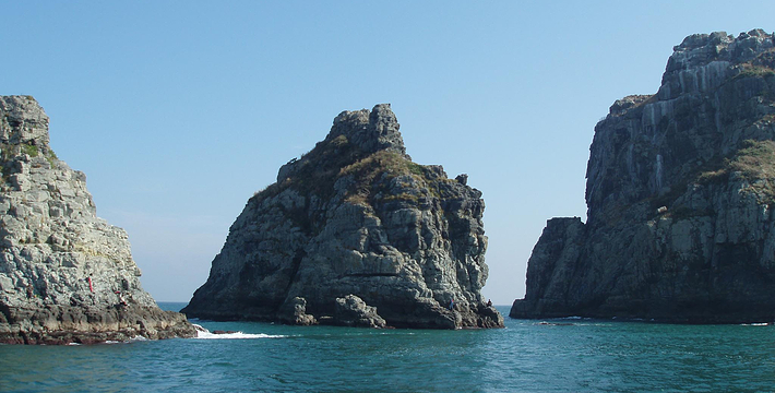 离雨塑岛近的是鹰岛,其名缘于岛的形状象鹰,但此岛还被叫做“碑岛”,说是岛上有块石碑,或说岛的形状象碑。鹰岛跟前的岛是锥岛,因其状如锥而得名,此岛很小但在五六岛中是第二高的岛。洞岛中间有个相当大的海蚀洞。后一个,灯塔岛上有座白色灯塔,成为进出釜山港的各种船舶的航标,此地又是喜爱海钓的人们经常光顾的地方。