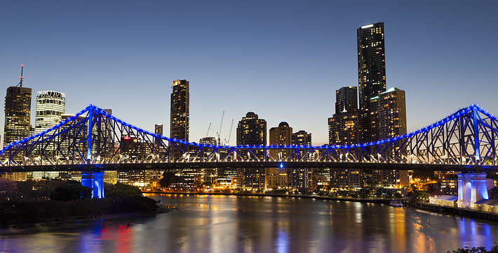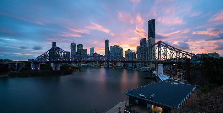 建造于1940年6月6日。桥的名字叫“故事桥”,但并没有什么特别的故事。之所以叫故事桥是因为它是以桥的设计者的名字“Story”命名的,中文名字就叫“故事”了。故事桥之所以有名是因为story后来又设计了更著名的悉尼大桥。故事桥是座钢板拉力桥,桥不长,仅500多米桥,但是它96%的建筑材料取自澳洲当地。故事桥是澳洲第二个开放的可以攀爬的大桥,所以在故事桥的爬桥活动是观赏布里斯本全景不容错过的项目。全程共两个半小时,指挥员带领您攀登上距离河面80米高的故事桥上,在桥的顶峰位置,360度全无阻碍地观赏布里斯本的景观。布里斯本的特色建筑以及环绕的山峦映入眼帘,壮丽的景色会让您屏气凝神、叹为观止,如果有胆量不妨试一下。