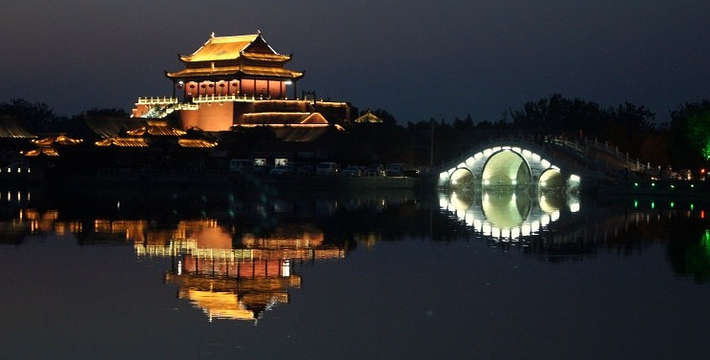 龙亭位于开封城内西北隅龙亭公园内,南接宋都御街。目前,成为中外游客向往的旅游胜地,有开封揽胜必游龙亭之说,公园面积为83.13公顷,其中水面过半。龙亭一带早在一千多年前曾是唐朝宣武军节度使衙署的所在地,后梁时改建为皇宫,名建昌宫。后晋、后汉、后周定都开封时仍以此地为宫室,改名为大宁宫。北宋时在此建大内皇宫,使之进入了历史极盛时期。金朝末年,这里再度成为皇宫禁苑。到了明代,朱元璋的第五子朱棣在此建周王府,使其保持了不衰之势。后因黄水泛滥,渐成废墟的煤山上建了一座"万寿宫",内设皇帝牌位,文武官员定期到此朝贺遥拜,后改称"龙亭"。