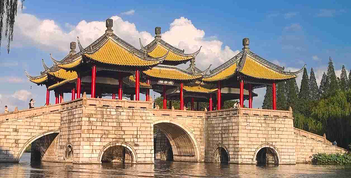 如果把瘦西湖比做一个婀娜多姿的少女,那么五亭桥就是少女身上那条华美的腰带。五亭桥不但是瘦西湖的标志,也是扬州城的象征。