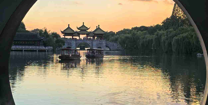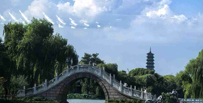 瘦西湖——烟花三月是折不断的柳,思念总比那西湖瘦,小家碧玉的灵动秀丽,船游其间自在怡然。瘦西湖位于扬州市北郊,现有游览区面积100公顷左右。瘦西湖为我国湖上园林的代表,融古典园林南秀北雄于一体,组合巧妙,构成了一个以湖为主,景外有景,园中有园的艺术境界。瘦西湖清瘦狭长,原是纵横交错的河流,历次经营沟通,运用我国造园艺术的特点,因地制宜地建造了很多风景建筑。瘦西湖从乾隆御码头开始,沿湖过冶春、绿杨村、红园、西园曲水,经大虹桥、长堤春柳,至徐园、小金山、钓鱼台、莲性寺、白塔、凫庄、五亭桥等,再向北至蜀岗平山堂、观音山止,既有天然景色,又有扬州独特风格的园林。