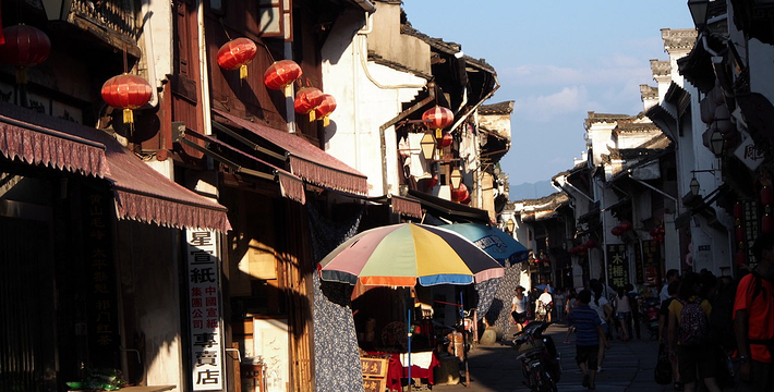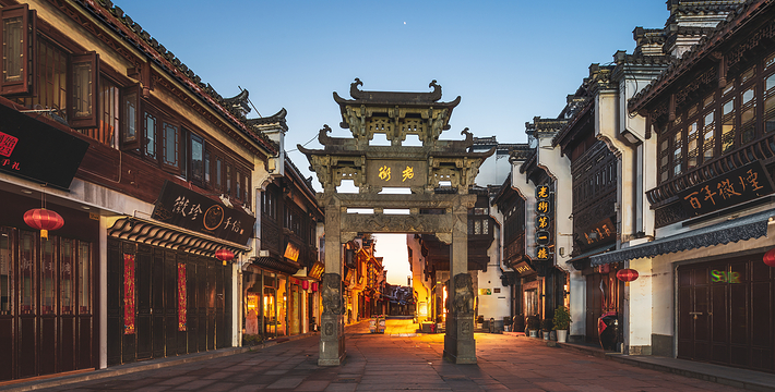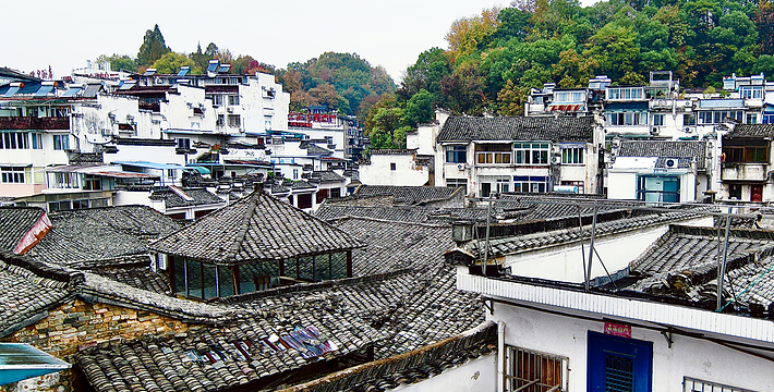 屯溪山城、明、清时代建筑风格端,是黄山市政府所在地,也是皖南旅游经济区中心城市。因其空中和陆路交通十分便利。屯溪风光秀美,古朴典雅、清澈明净的率水、横江、新安江在此汇合,江水穿城而过;碧螺叠翠的华山、杨梅山蜿蜒市内;戴震公园、江心公园点缀其间;山环水绕,使素有“一半街巷一半水”的屯溪更显得风姿绰约。这里,不仅人文荟萃,涌现出如清代著名哲学家戴震、明代著名数学家程大位等历史名人,而且留下了如屯溪老街、戴震藏书楼(纪念馆)、程大位故居、程氏三宅、关阳桥、小龙山等众多的名胜古迹。