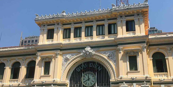 胡志明市中央邮局,建于19世纪末,由法国建筑师设计,大厅内部装饰华丽,圆顶极富古典气息。这座邮局至今仍在使用,从这里寄出一张明信片,是来到越南不可不留的纪念。