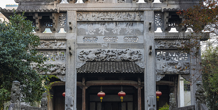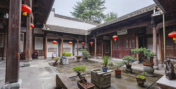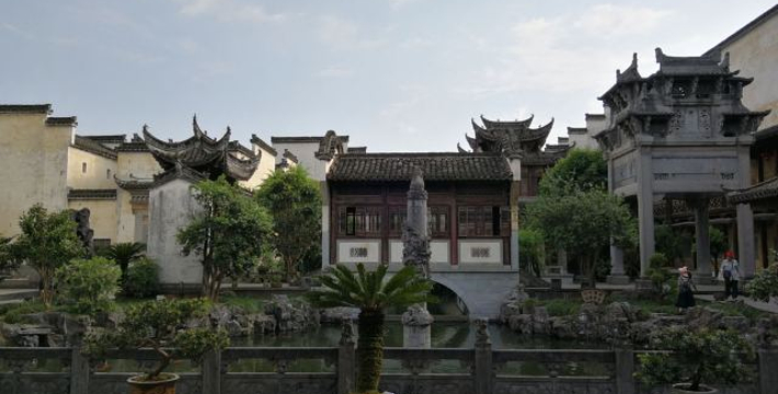 徽商大宅院又名“西园”,是将散落在全县范围内濒临坍塌的26座明末、清代及民国时期具有徽派特色的建筑进行拆迁和修缮,按照“复原”的原则,整体搬进了西园。大宅院内的古徽州“三雕”(石雕、木雕、砖雕)多达14000多处,其中有不少是近20年来从民间征集、收购来的散件。