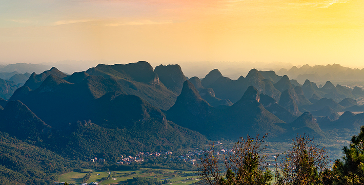 千峰环野绿,一水抱城流站在尧山之巅将桂林美景尽收眼底。
