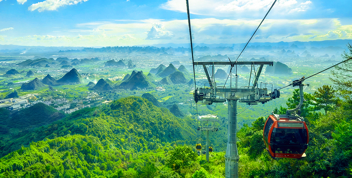 尧山位于桂林市东郊,距市中心8公里,主峰海拔909.3米。尧山以变幻莫测、绚丽多彩的四时景致闻名于世,春天,满山遍野的杜鹃花将一座层峦叠嶂的大山打扮得姹紫嫣红;夏天,满山松竹、阵阵碧涛、山川竞秀、郁郁葱葱;秋天,枫红柏紫、野菊遍地;冬天,雪花纷扬,白雪皑皑、冰花玉树,别有一番情趣。乘观光索道可直达尧山之顶,极目四望,山前水田如镜,村舍如在画中,千峰环野绿,一水抱城流通渠道桂林美景尽收眼底,峰海山涛,云水烟雨的桂林山水就如同一个个盆景展现在您的眼前。