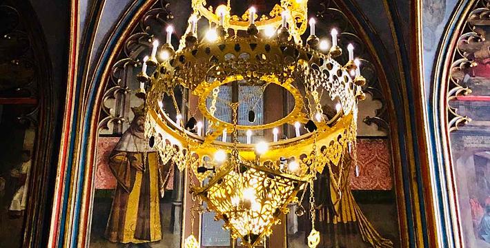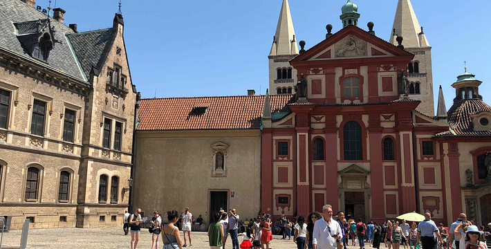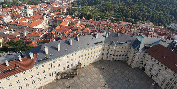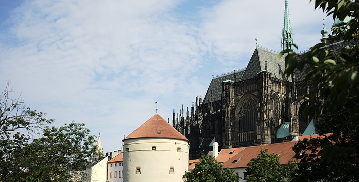 布拉格城堡位于伏尔塔瓦河畔的丘陵上,布拉格城堡是布拉格的地标,建于公元九世纪,布拉格城堡的真名是赫拉德卡尼,又称为总统府,属哥特式建筑,拥有教堂、宫殿、庭园,占地45公顷,包括1所宫殿、3座教堂、1间修道院,分处于3个中庭内。长久以来这里一直是布拉格的王室所在地,布拉格城堡现在仍然是总统与国家机关所在地,至今已有1000多年历史。古堡内主要包括以下景点:圣维塔大教堂、旧皇宫、圣乔治教堂、黄金巷、火药塔、画廊等。