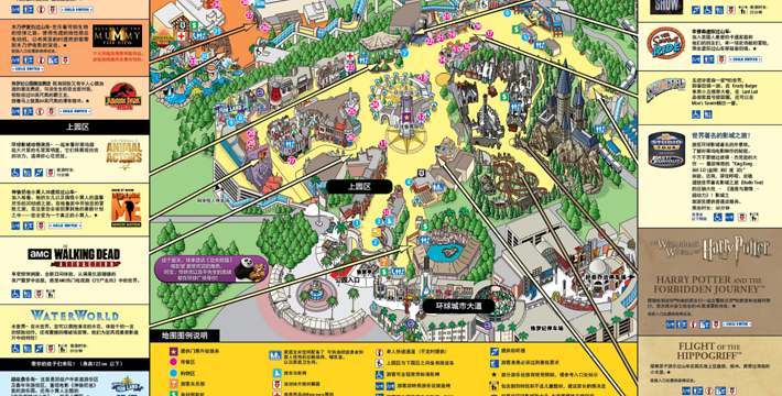 1.翱翔于霍格沃兹上空,感受城堡中上下翻飞的全新体验呢,哈利波特禁忌之旅不容错过; 2.从下园区开启影城之旅,在变形金刚虚拟过山车中享受令人惊叹的感官体验; 3.感受全新景点《行尸走肉》的末日世界; 4.在侏罗纪公园激流勇进中来异常刺激惊险的河筏漂流探险,与恐龙碰面; 5.感受全新压轴大戏:速度与激情——超动力; 6.坐在看台溅水区观看招牌表演——水世界。每天首场、末场更有机会做到最佳位置