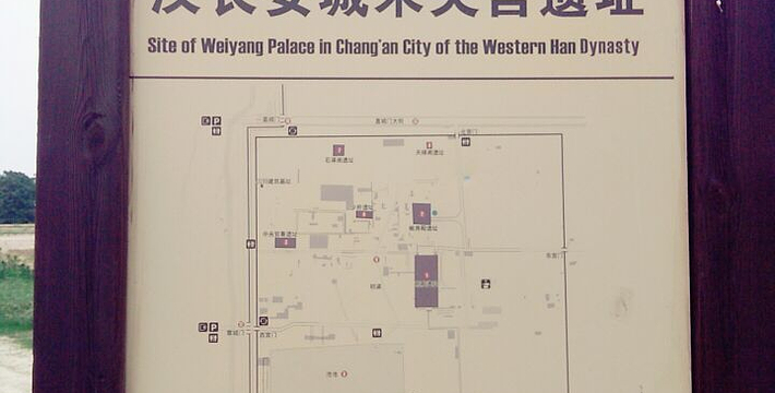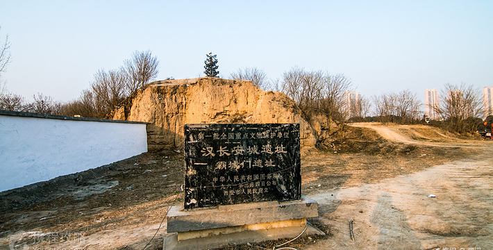 位于西安城西北约5千米。在西汉200多年中,这个城市一直是中国的政治、经济和文化中心。遗址现为全国重点文物保护单位。长安城历经三个时期,90多年建成。汉高祖五年(前202年),刘邦将秦兴乐宫重修,改名为长乐宫,由栎阳迁都于此处理朝政。汉高祖七年(前200年)建成未央宫。惠帝元年(前194年)开始修筑长安城,惠帝五年(前190年)九月城墙修筑完工。汉武帝太初元年(前104年),兴建了城内的北宫、桂宫、明光宫和城西的建章宫,并在城西修建上林苑,开凿了昆明池等。至此,长安城全部建成,规模齐备。周长25.7千米,面积36平方千米。为了把先修的宫殿建筑都包括在内,城垣只得顺地势修筑,因此汉城成为不规则的方形。城南像南斗星,城北像北斗星,因此又称“斗城”。城内街道布局整齐,有8条大街,160个巷里,9个市区。街道宽平,可以并列12个车轨,道旁栽植槐、榆、松、柏,茂密丛荫30万。