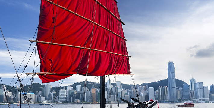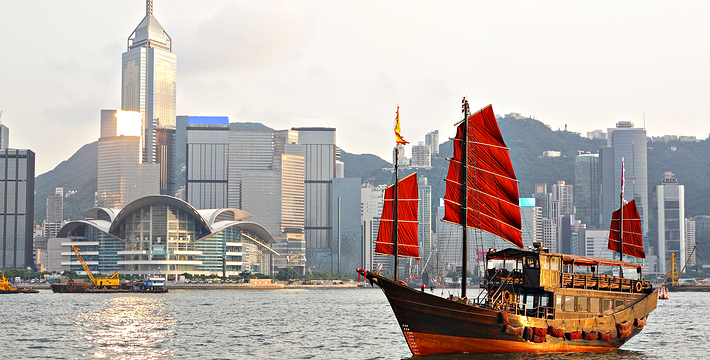 扬起风帆,在维多利亚港中缓缓前进,左右飘摇。看着两岸高楼林立,看着蔚蓝清澈的海水,不禁让人回想起历史。