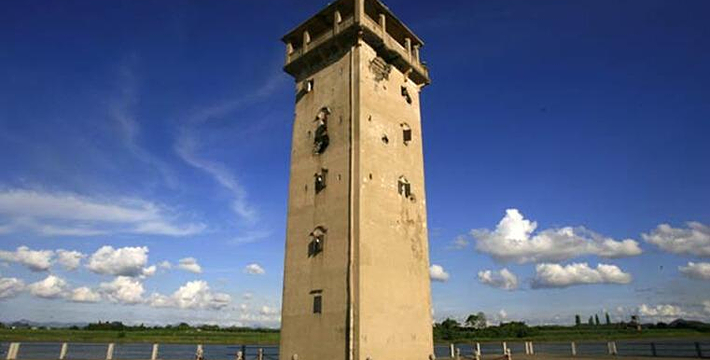 赤坎南楼位于开平市赤坎镇窖堤洲藤蚊村,是侨乡人民为了防御盗贼,于1913年集资兴建的。南楼雄峙于潭江之滨,与北楼隔河相对,都是钢筋水泥建造的古式楼。北靠公路,南临潭江之水,是三埠、赤水水陆交通要道,形势险要,有一夫当关,万夫莫开之势。南楼楼顶设有探照灯,和平时期,南楼是航标,战争时期,南楼是关卡。抗日战争时期,有抗战的七壮士,凭借其险要,阻击从三埠向赤坎进攻的日寇船只,令其不敢越雷池半步。后来日军动用大炮和毒气攻击,致使七壮士中毒晕阙,被俘杀害。七壮士英勇抗敌的感人事迹在当时引起了极大的震撼,各地报纸争相报道评论,多年来寂寂无闻帕南楼,由此而皂闻退还,南楼之名不腔而定。
