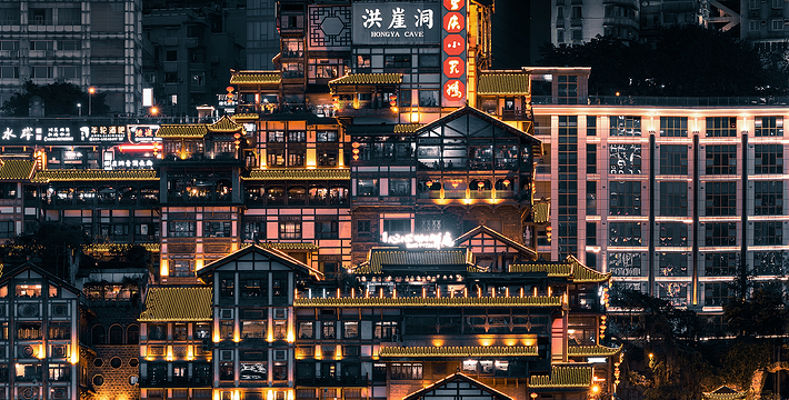 洪崖洞民俗风貌区作为国家 级AAAA旅游风景区,是小天鹅集团投资修建的目前市中心唯 一一片展现巴渝传统民俗风貌区域。他与朝天门广场、解放碑商务区形共同形成了重庆最市民及游客追捧的游览胜地。“洪崖洞”用创新的思维把古老的巴渝吊脚楼建筑艺术注入全新的文化理念之中;与江景和城市风貌完美融合,以75米高的超常落差,顺崖而上,高低错落、依山而建。它浓缩了重庆三千年历史沉淀,融重庆独特的巴渝民俗文化、山地民居的建筑文化、码头文化于一体,成为倍受世界瞩目的,独特靓丽的城市名片。如今,热度持续升温的洪崖洞民俗风貌区,以其独特的人文内涵和璀璨的建筑特色,已然成为人流量仅次于故宫,国内外游客争相打卡、驻足、游览的重庆地标性景区。每一天,洪崖洞以其独特的魅力和不可复制的特色,吸引着来自全球各地的游客前来观光游览。