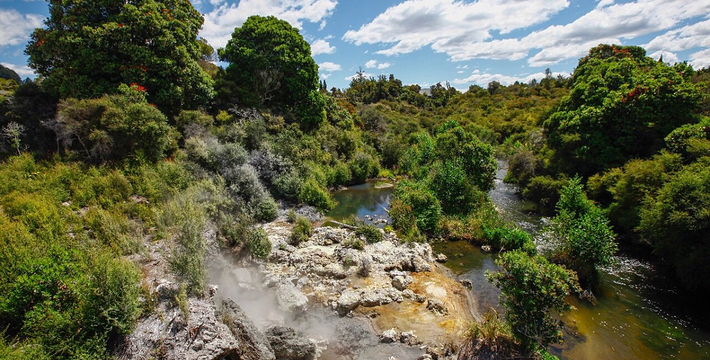 罗托鲁瓦市中心附近,有名叫奥希内穆图的毛利村,内有毛利人的会议厅,柱子上雕有记述阿拉瓦部族历史的精美图案。1963年市西南角的娃卡丽娃丽娃毛利寨辟为公园,内有会议厅、住房和贮藏室等早期建筑。早期毛利人的住房,用蒲草和棕榈树枝搭成,简陋低矮,不能直腰。各种贮藏室均有高脚支撑,工具室则类似我国云南傣族的竹楼,但较矮小;族长的食品室,则离地很高,外形似杂技演员用竹子顶着的椅子。园中心的间歇泉,水柱笔直喷射,高30余米,似银链闪耀,白莲盛开。罗托鲁瓦是毛利族历史文化荟萃之地,毛利族历史源远流长,其别具一格的文化工艺,值得游人在此慢慢品味。毛利族人擅长用地热烧煮食物,游客在罗托鲁瓦可品尝到地道的石头火锅,石头火锅即是把经地热烘烫的薄薄石块放进地洞内,再把食物烩熟,风味独特。