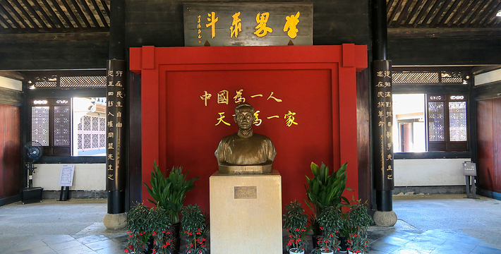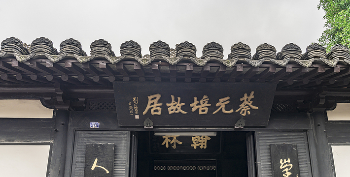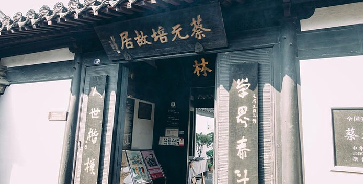 蔡元培故居坐落在绍兴城区笔飞弄13号,为蔡氏祖父以下几代聚居地。蔡元培(1868―1940),字鹤卿,号孑民,出身科举,历任民国教育总长、北京大学校长、中央研究院院长等职,是我国近代著名的民主革命家、教育家、科学家。蔡元培自出生至出任翰林院编修(1894年)前,一直生活于此。故居的主体建筑坐北朝南,为砖木结构,共三进,占地1670平方米,系清中期重建。每进三或五开间,中间有天井相隔,是绍兴传统的“台门”建筑,上悬刘海粟手书“蔡元培故居”匾额;第二进厅堂和第三进楼房均坐北朝南,三进分布不在同一轴线上。由门厅通往堂厅的前天井特别开阔,差不多有篮球场那么大,周边的围墙也特别高,高墙深院,显得气势不凡。第二进一堂两厅,已辟为陈列室,堂厅正中放着蔡元培半身塑像,颇有学者风度。左壁悬有毛泽东撰、沙孟海书的“学界泰斗,人世楷模”巨幅联语;右壁有周恩来撰、沈定庵书的“从排满到抗日战争,先生之志在民族革命;从五四到人权同盟,先生之行在民主自由”