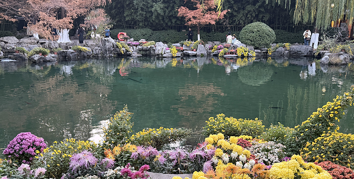 池岸以石砌垒,四周近水楼台,与池相映;小桥回波,亭榭探水,曲廊蜿蜒;山石挺拔,绿柳轻荡。游人凭栏俯瞰,尽得水趣。