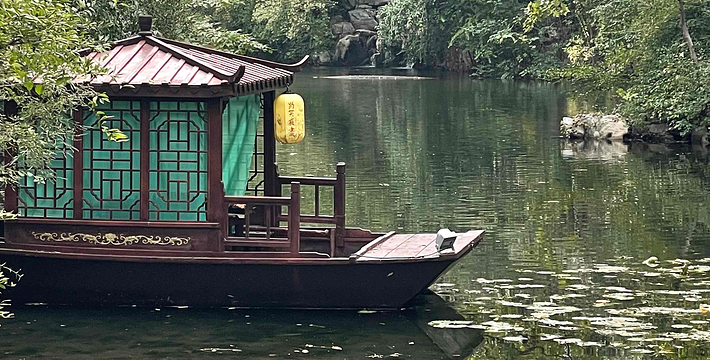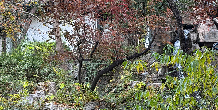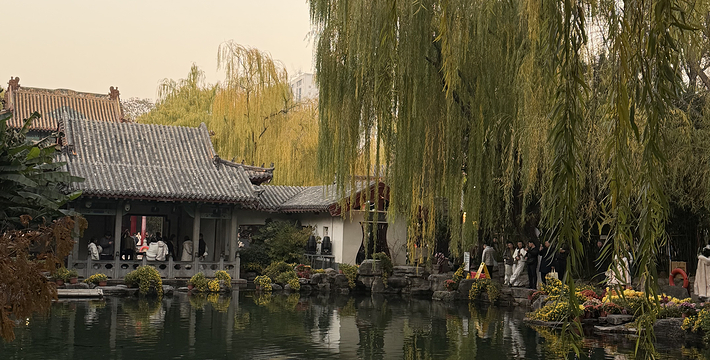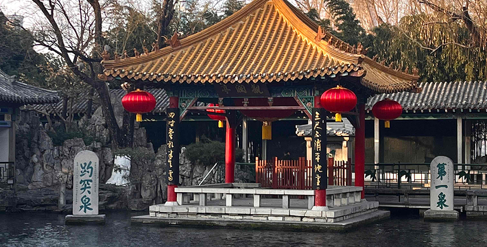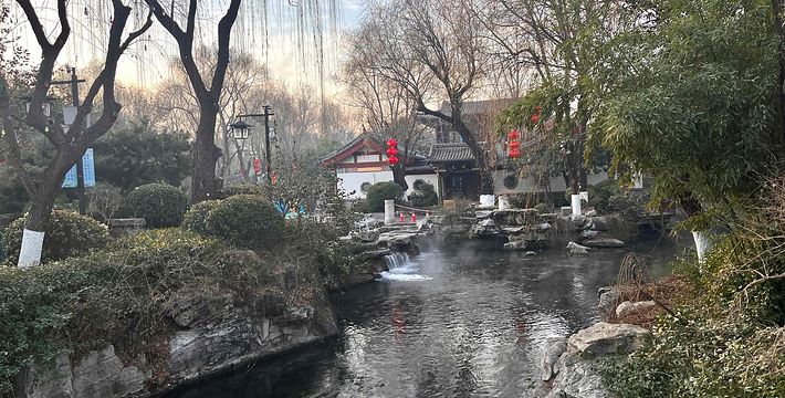 泺苑位于趵突泉公园西北区,四围皆曲折环绕以清澈的泉溪,形成“人家尽枕河”的泉城特色景观。
