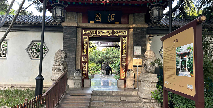 沧园在公园东南隅,园周曲廊相围,沿廊修竹婆娑。院内苍松挺拔,腊梅橙黄,突出了冬季景观。尤其雪落时刻,松竹梅各展风姿,构成一幅“岁寒三友图”。