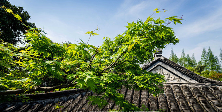 宜雨轩,东阔三楹,四面是窗户。轩的屋顶用扬州常风的黛瓦,四角微微上扬,在清秀之中显出稳重。宜雨轩是园主人接待宾客的场所。