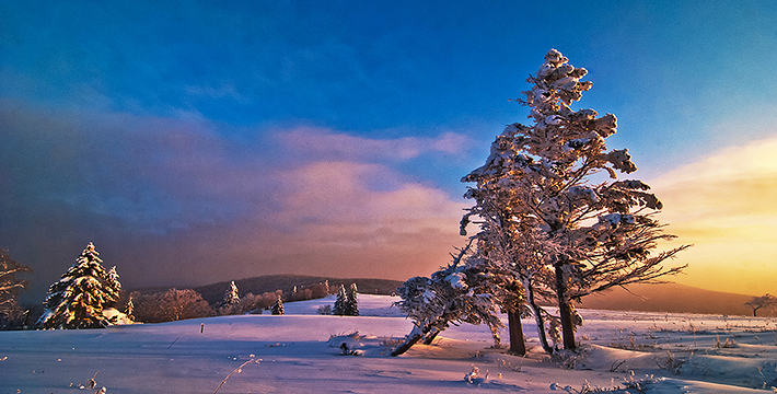 因为积雪覆盖,世界变得寂静无声。因为雾凇环绕,参天大树也静止了。雪色如裳,披银戴玉,玉树琼花,如入仙境。