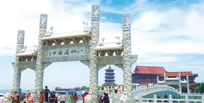 山东蓬莱八仙过海景区位于蓬莱市北黄海之滨,与长山列岛隔海相望,是一个三面环海的葫芦岛,有一座八仙桥通向景区,将人间与仙境紧紧的连在一起,游览面积5.5万平方米,主要景点近40处。周围海域天高水阔,景色壮观,空气宜人,是一个天然的大氧吧。春夏之交,常有海市、海滋出现,虚幻缥缈,美不胜收。景区以道教文化和蓬莱神话为背景,以八仙传说为主题,突出大海仙山的创意,集古典建筑与艺术园林于一体,内涵丰富,意境深远,观览性极强。