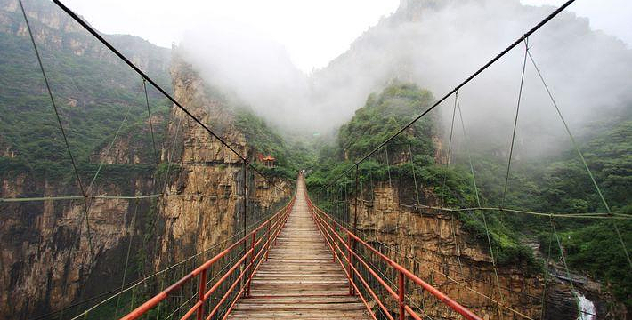 悬崖绝上的凌空栈道,让你行走在峭壁旁边,感受高空的刺激,同时,居高临下,将所有美景尽收眼底。