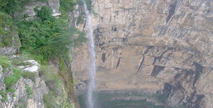 地处绵绵太行山腹地。位于山西省与河南省交界处,距平顺县城35公里,离河南林州市18公里。景区总面积1419.1公顷,海拔1886米,被誉为“天之脊”。天脊山素有“赛江南”的美称,完好的植被、清澈的泉水、美丽的传说……荟萃了太行山水之精华,集奇、险、绝、秀、幽为一体,气候宜人,是集观光旅游、休闲度假、探险写生的理想去处。天脊山自然风景区的森林覆盖率达90%以上。山峰奇险独特,高耸天际,直入云霄。山势海拔由500米至1800米呈三级绝壁分布。景区之中四季流水不断,各种瀑布溪泉遍布山谷之间,峰峦叠翠,植被繁多。绝壁、峡谷、清潭更是让人叹为观止。形态各异的奇峰异石贯穿整个景区:惟妙惟肖、栩栩如生的天然佛祖像,赋有民间神话传说的神牛谷、飞来峰、求贤峰、龙爪峰、骆驼峰……也各有各的传说,各有各的奇特。扶梯而上的绝壁栈道,依崖而凿,俯视山谷,落差300余米,惊险刺激之余,山间美景尽收眼底。用时两年全人工开凿完成的灵音洞长48米,宽2.7米,再现了当地人民“愚公移山”之壮举。“风经绝顶回疏雨,石倚危屏挂落泉”,天脊山的瀑遍布山谷,水流清澈透明,流水声清脆悦耳。其中天脊龙瀑,落差达346米,气势宏伟”。站在瀑底仰望高瀑,瀑水从天而降,似颗颗珍珠被风吹过飘飘缈缈而落,此景之美无不令人叹为观止。“南有黄果树,北有天脊瀑”真可谓名不虚传。如果把黄果树瀑布比做一阳刚美男,天脊瀑则是一风情万种,尽显妩媚之态的少女。