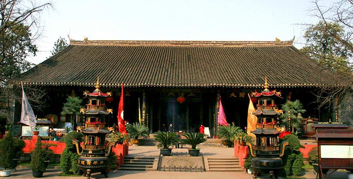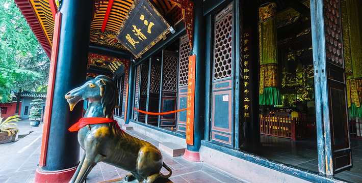 青羊宫坐落在成都西南郊,南面百花潭、武侯祠(汉昭烈庙),西望杜甫草堂,东邻二仙庵。相传宫观始于周,初名“青羊肆”。据考证,三国之际取名“青羊观”。到了唐代改名“玄中观”,在唐僖宗时又改“观”为“宫”。五代时改称“青羊观”,宋代又复名为“青羊宫”,直至今日。