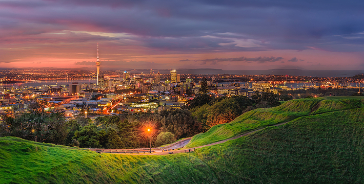 伊甸山(Mount Eden)位于市中心以南约5公里处,是一死火山的火山口。山顶设有瞭望台,视野开阔,是眺望市景的好地方。此外,还可参观到12世纪时毛利人要塞的遗迹。