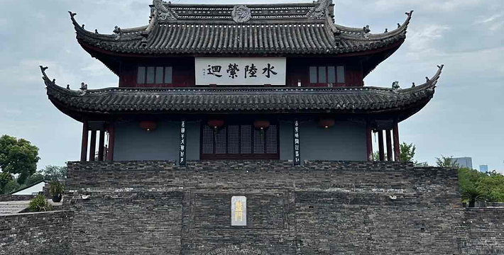 盘门景区位于苏州古城西南隅,古迹众多,人文景观丰富。景区内瑞光塔、水陆城门、吴门桥分别为国家、省、市级文物保护单位。为弘扬历史文化,加快发展旅游事业,近年来,盘门景区修复古城墙,整治瑞光塔院,重建四瑞堂、伍相祠、放生池,还营造一池三山、种树植草,精工修造丽景楼、涛隐翠、双亭廊桥、水濂洞等诸景点,景区已经成为苏州风貌独特的历史文化旅游胜地。始建于春秋(公元前514年),重建成于元末。城楼为1986年初夏重建。盘门是苏州古城唯 一保存完整的水陆城门,它由两道水关、三道陆门和瓮城相互组合而成。陆城门分内外二重,二门之间设有“瓮城”,可藏卒数百,以备突然出击之用,水城门和陆城门紧相毗连,亦系砖石结构,分内外二重。水陆城门均设有臣大的闸门,古代用盘车提升或关闭,可控制往来行人与船只,便于设防守城。