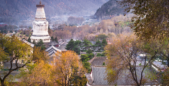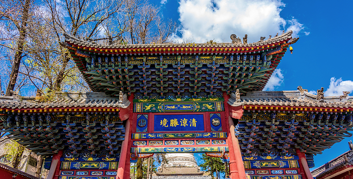 五台山方圆约320公里,因五峰如五根擎天巨柱拔地而起、 巍然矗立,峰顶平坦如台,故名五台。