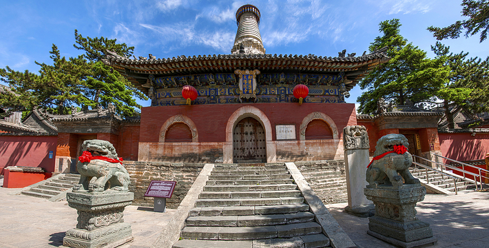五台山位于山西省东北部,忻州市五台县和繁峙县之间,西南距省会太原市230公里。与浙江普陀山、安徽九华山、四川峨眉山、共称“中国佛教四大名山”。列中国十大避暑名山之首。与尼泊尔蓝毗尼花园、印度鹿野苑、菩提伽耶、拘尸那迦并称为世界五大佛教圣地,或者世界五大佛教名山。2009年被联合国教科文组织以文化景观列入世界遗产名录。因五峰如五根擎天巨柱拔地而起、巍然矗立、峰顶平坦如台,故名五台。又因山上气候多寒,盛夏仍不见炎暑,故又别称清凉山。五台山属太行山系的北端,跨忻州市繁峙县、代县、原平市、定襄县、五台县,周五百余里。中心地区台怀镇,距五台县城78公里、繁峙县砂河镇48公里、忻州市150公里、山西省会太原市240公里。在北纬38°50'—39°05'、东经113°29'—113°44'之间,由一系列大山和群峰组成。其中五座高峰,山势雄伟,连绵环抱,方圆达250公里,总面积592.88平方公里。由古老结晶岩构成,北部切割深峻,五峰耸立,峰顶平坦如台,故称五台︰东台望海峰、西台挂月峰、南台锦绣峰、北台叶斗峰、中台翠岩峰。五峰之外称台外,五峰之内称台内,台内以台怀镇为中心,北台顶海拔3061.1米,有“华北屋脊”之称。五台山自然植被以草地为主,由草甸、草原、灌丛构成,是优良的夏季牧场。五台山是文殊菩萨的道场,与浙江普陀山、安徽九华山和四川峨眉山并称为四大佛教名山,并以其悠久的历史文化和规模宏大的寺庙建筑群位居四大佛教名山之首。自东汉永平(58年~75年)年间起,历代修造的寺庙鳞次栉比,佛塔摩天,殿宇巍峨,金碧辉煌,是中国历代建筑荟萃之地。雕塑、石刻、壁画、书法遍及各寺,均具有很高的艺术价值。唐代全盛时期,五台山共有寺庙300馀座,经历几次变迁,寺庙建筑遭到破坏。目前台内外尚有寺庙47座。历史上,印度、尼泊尔、朝鲜、日本、蒙古、斯里兰卡等国的佛教信徒,来此朝圣求法的甚多。