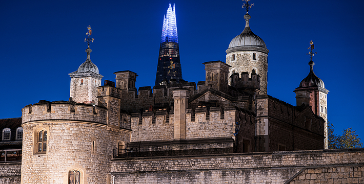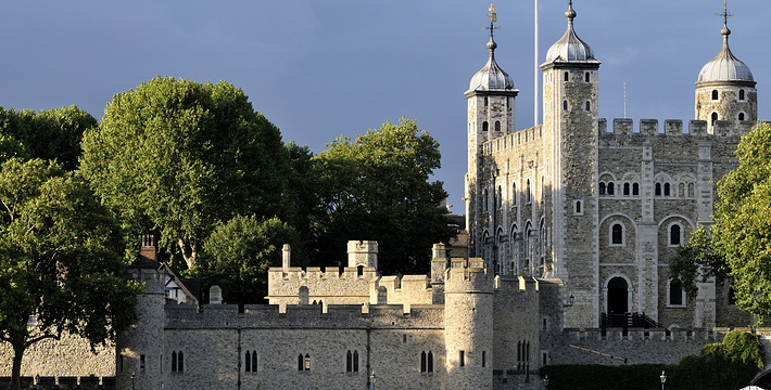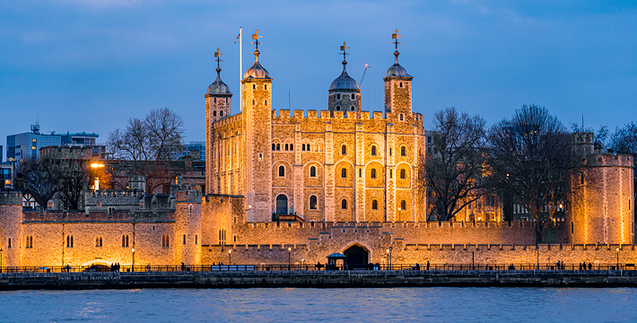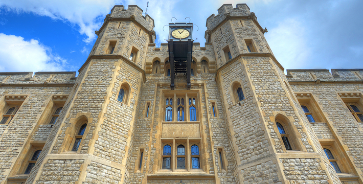伦敦塔始建于1078年。它在历史上既作过王宫,也作过法院,后来又是一所监狱。伦敦塔占地7.2公顷,周围用巨石筑成一道厚实的城墙。城墙上有许多炮台、箭楼,四周是一条又宽又深的护城河。从1107年,诺曼征服伦敦后,伦敦塔成了国王行辕总署和兵营。从1140年到17世纪该塔一直是英国历代国王的主要住处。英国暴君詹姆斯一世在塔内被处死之后,伦敦塔就成了监禁犯人的牢狱和刑场。伦敦塔现在已经成了对外开放的博物馆。塔内有个珍宝馆,观众可以看到英国历代国王的王冠、王室珍藏的金银珠宝。伦敦古堡中还有一些身体肥胖称为“渡乌” 的大乌鸦,有专人饲养。伦敦塔有千年的历史,游客每年达200万人。在出入口处游人可以看到两名身着古老的都铎王朝制服的禁卫,这些 “古老卫士”们,成了游客欣赏和摄影的对象。