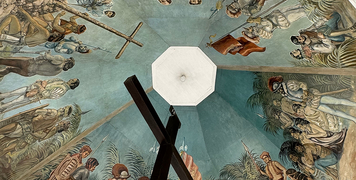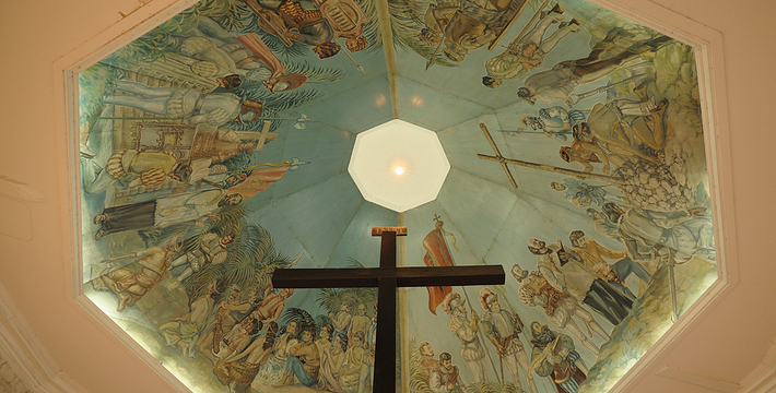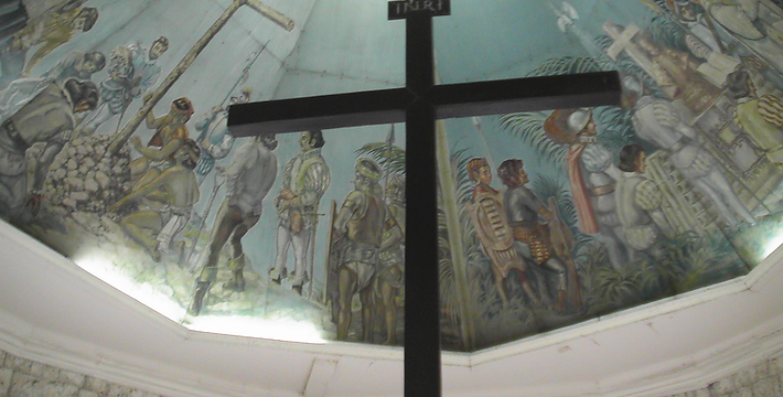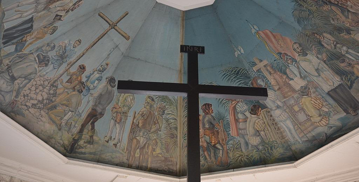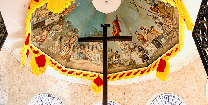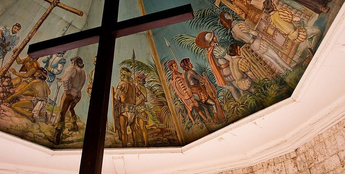麦哲伦十字架(Magellan's Cross)位于宿雾岛东方的马克丹岛上。 1521年,葡萄牙航海家麦哲伦在宿雾传扬天主教义,适逢该年4月14日,Pedro Valderama——土著族长Rajah Humabon,其妻子Queen Juana及其他400名土著举行施洗仪式。为纪念这场盛大的宗教仪式,麦哲伦在宿雾竖立了十字架。在1525年至1740年间,来自Agustinas教会的僧侣为十架兴建了一个露天开放式的圣坛,当地人相信十字架具有神圣力量,认为只要将十字架削成屑服用,就能够医治百病,便把它的外皮剥落拿走。为了保护此历史古物,后来人在圣婴教堂通往圣佩特罗堡途中建造了一座亭式的屋子用于存放它,现在更特别用Tinadalo木打造了一个空心外框把它包藏在内。同时,六角形的天花板壁画,保留着当年的原貌,色彩非常艳丽逼真。宿雾人非常信奉并尊敬这个深具历史及文化意义的十字架,每逢星期日的早上,便有无数的善男信女带备香烛前来虔诚地祈求平安好运。