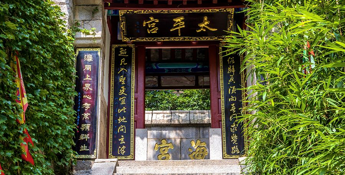 太平宫位于崂山东麓仰口湾畔的上苑山中,有奇峰异石,有古木幽洞,令游者流连忘返,赞叹不已。路两侧有两株古松,据传是宋初建宫时所植,树侧的巨石上镌刻着“疑是幻境”四个大字。在崂山现存的寺观中。据明代嘉靖四十五年(公元1566年)和清代顺治十年(公元1653年)重修太平宫的碑文记载,太平宫初名太平兴国院,又称上苑。系宋太祖为华盖真人刘若拙敕建道场,金明昌年间(公元1190~1195年)重修。