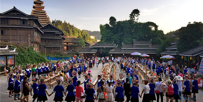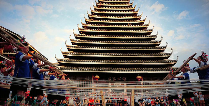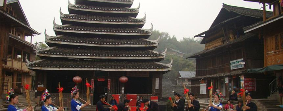 马安寨中心广场的鼓楼前经常会有原生态的侗族歌乐表演。
