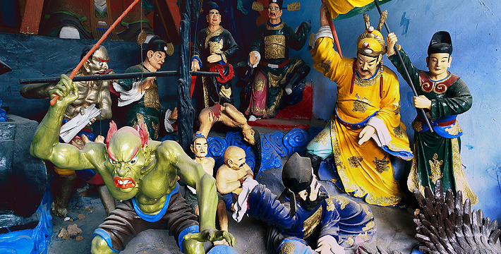 丰都鬼城旧名酆都鬼城,古为“巴子别都”,东汉和帝永元二年置县,距今已有近2000年的历史,位于重庆市下游丰都县的长江北岸,是长江游轮旅客的一个观光胜地。丰都鬼城又称为“幽都”、“鬼国京都”、“中国神曲之乡”。鬼城以各种阴曹地府的建筑和造型而著名。鬼城内有哼哈祠、天子殿、奈河桥、黄泉路、望乡台、药王殿等多座表现阴间的建筑。