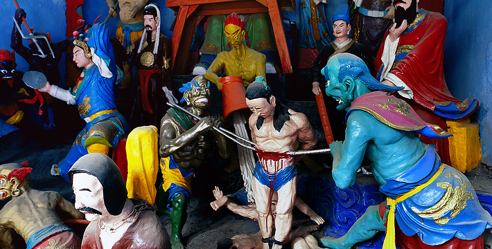 丰都鬼城又称为“幽都”、“鬼国京都”、“中国神曲之乡”。鬼城以各种阴曹地府的建筑和造型而著名。鬼城内有哼哈祠、天子殿、奈河桥、黄泉路、望乡台、药王殿等多座表现阴间的建筑。