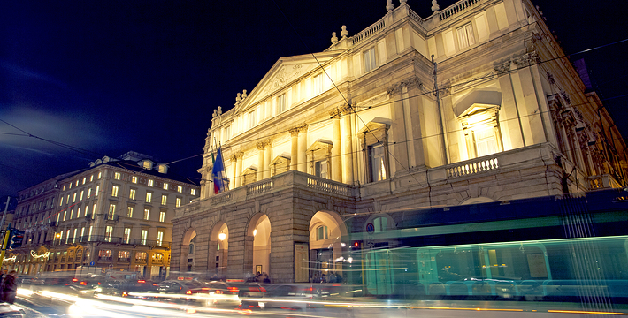 斯卡拉歌剧院(一译史卡拉歌剧院,英文名为 Teatro alla Scala 或 La Scala)位于意大利米兰。歌剧院于1778年8月3日正式启用,当时名为Nuovo Regio Ducal Teatro alla Scala,首日上演安东尼奥·萨列里的歌剧《重建欧洲》(L'Eur 斯卡拉歌剧院夜景opa riconosciuta)。在世界艺术史上,很少有一座剧院像意大利米兰的拉·斯卡拉歌剧院那样,被看成是完美的化身、建筑的典范。它不仅是一座华美的大歌剧院,同时也是歌剧、尤其是意大利歌剧的象征,甚至还是意大利音乐的象征。第二次世界大战期间,剧院遭到轰炸,整个演出大厅片瓦无存。战后,意大利政府拨出巨资。