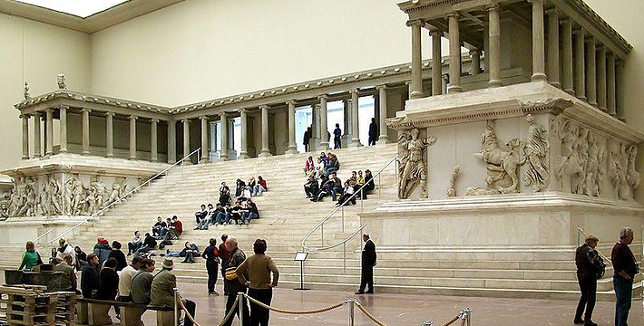 佩加蒙博物馆(Pergamonmuseum)有好几个展馆和一流的展品。古代收藏馆藏有著名的佩加蒙神坛 (Pergamonaltar)、米勒特(Milet)市场门(Markttor);伊斯兰艺术博物馆(Museum für Islamische Kunst)藏有姆沙塔浮雕立面(Mschatta-Fassade,约旦8世纪)、阿勒坡房间(Aleppo-Zimmer,17世纪)、伊斯兰世界的艺术和工艺美术(8世纪至19世纪);西亚细亚博物馆(Vorderasiatisches Museum)藏有伊施塔尔城门(Ischtar Tor)和行进大街(Prozessionsstra?e)、来自苏梅尔、巴比伦、亚述、北叙利亚-东安纳托利亚地区,即现在的伊拉克、叙利亚和土耳其的举世闻名的展品。