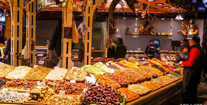 波盖利亚市场(Mercat de la Boqueria),这里既是当地美食家们的天堂,也挤满了挎着相机的观光客。各种当地出产的蔬菜水果,新鲜而饱满,泛着令人愉悦的光泽,拥有艳丽夺目的色彩。伊比利亚火腿、奶酪和海鲜也同样受到青睐。
