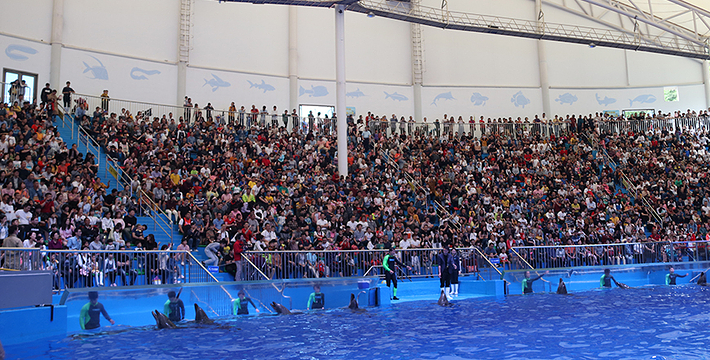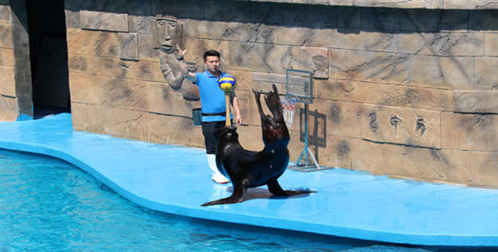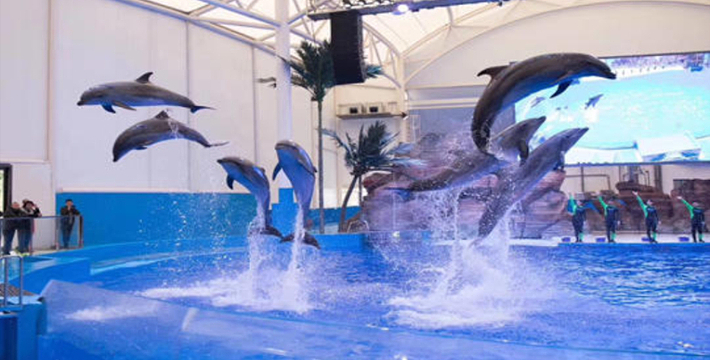 大型海豚科普剧场,几十只海豚精灵于此安家,在这里可以与海豚亲密接触。每当欢快的音乐响起,可爱活泼的海豚跃出水面,让我们沉浸在现实的童话王国,让孩子们在欢声笑语中了解美丽的海豚。