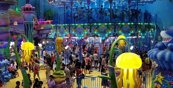 被誉为长泰之眼的88米巨型摩天轮,是天柱山欢乐大世界地标式游乐设施。你可以在摩天轮上许下心底美好的愿望,18分钟完成你人生的圆满!夜景灯光更是绚丽多彩,游动的鲨鱼、跳跃的海豚,伴着成队的鱼群仿佛在空中飞舞!